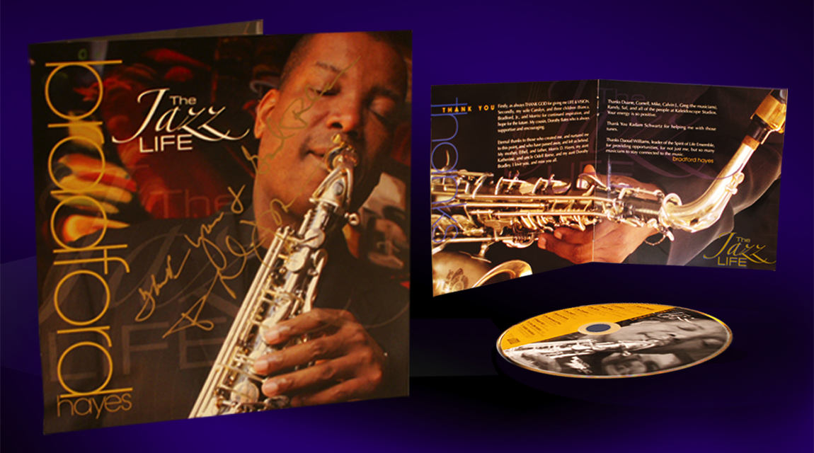 International musician Bradford Hayes has been a fixture on the New York City tri-state scene for decades. When it was time to release his third CD Bradford wanted a look just as savory as the sweet sounds flowing from his sax. Swinton Studio delivered a colorful rendition reflecting the stylish and jazzy nature of Bradford Hayes and his all star line up.